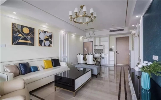 所謂地面分隔,就是在地面磚上做邊線造型,這個(gè)做法通常都是綜合了墻面、天花一起的,適合一些相對(duì)較大面積的客餐廳區(qū)域。