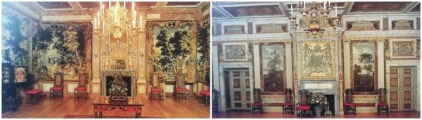 左上:《韓熙載夜宴圖》局部。右上:宋太祖像。左下:荷蘭Het Loo王宮享膳廳。